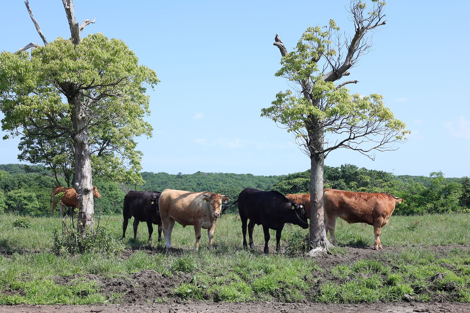 We transform abandoned farmland into pastures, preserving our region’s agricultural landscape. By raising cattle and expanding grasslands, we sustain the land and protect our hometown.“Fuku” (福) means prosperity—for the land and community.
